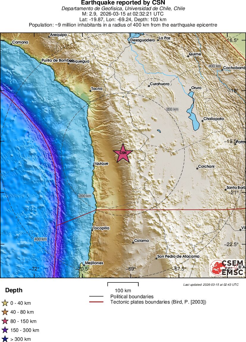 | 2.9 | 103.1 | 7089 | 18:32 | Poveznica | Manji potres - TARAPACA, CHILE - Danas |